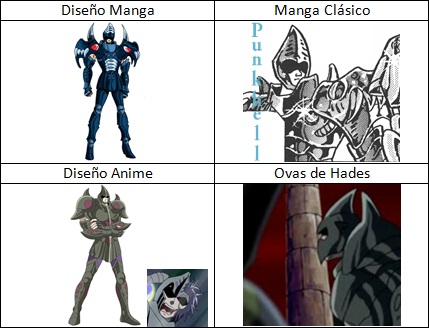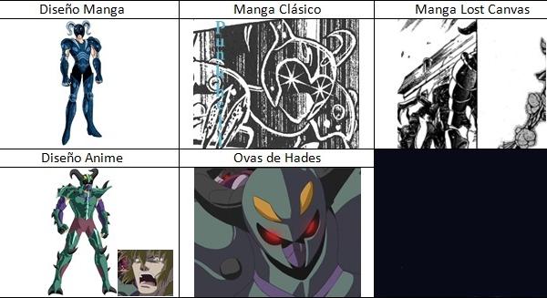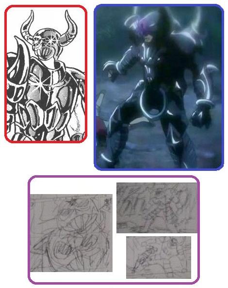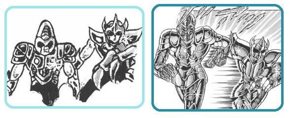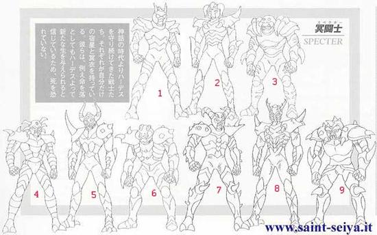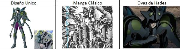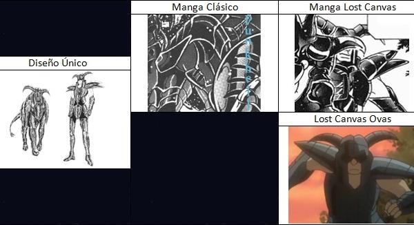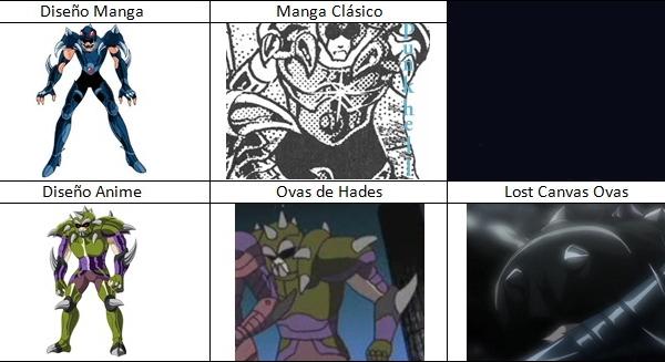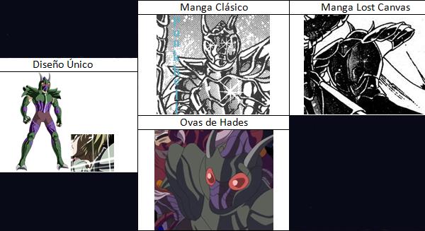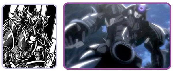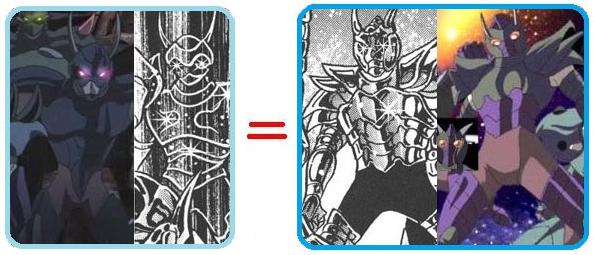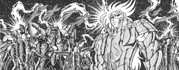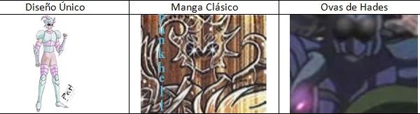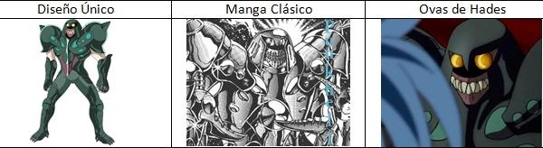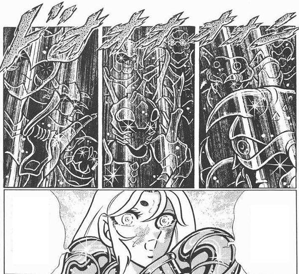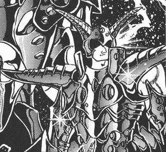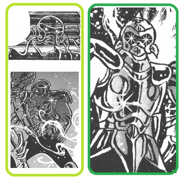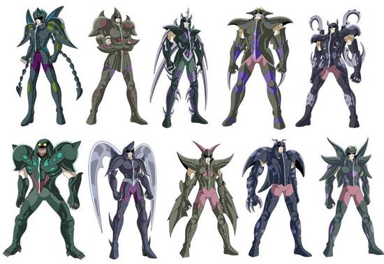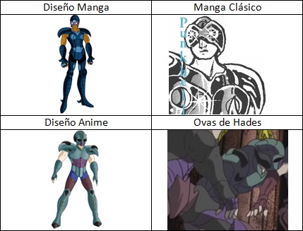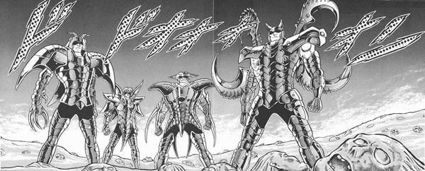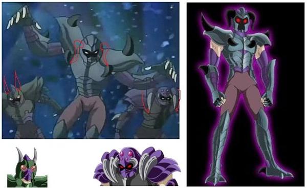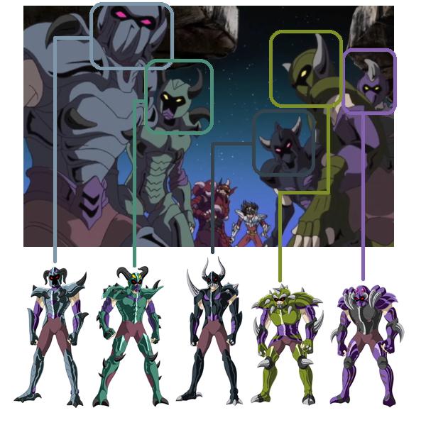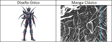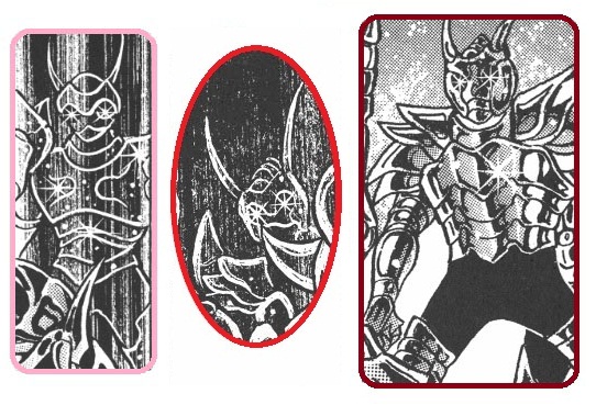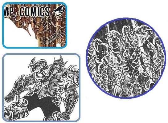 de personajes del universo de Saint Seiya, armaduras con formas bastante