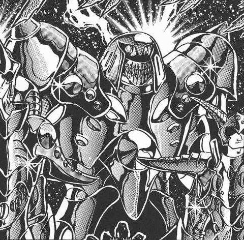 con las vistas en el manga de Kurumada, como tiburones, dinosaurios