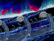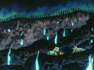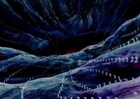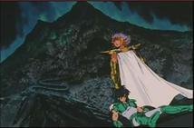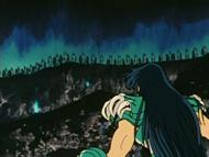 Shiryu se despierta en un lugar rocoso muy extraño, cubierto por una tenue oscuridad, aunque débilmente iluminado por múltiples fuegos fatuos azules, y nota que ha recuperado la vista. Shiryu percibe entonces una larga fila de individuos que le dan la espalda y caminan en línea recta hacia una enorme colina sin prestar atención a su entorno. De repente, se da cuenta de que Hyoga está en la fila de las almas, pero su amigo no oye sus apelaciones. Al tratar de alcanzarlo, el alma de Atenea aparece para decirle que no siga avanzando, que desista de aventurarse a ese lugar, que no es otro que la antecámara del mundo de los muertos.