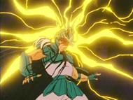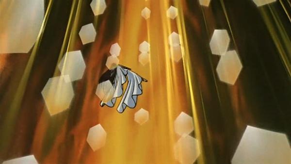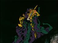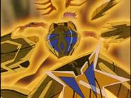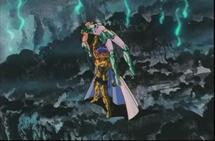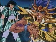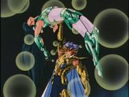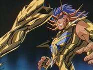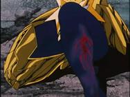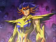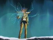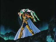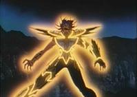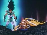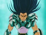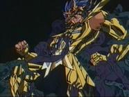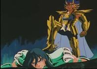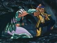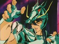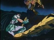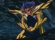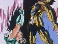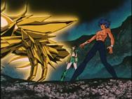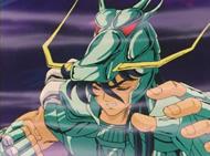 De inmediato, se separan de su cuerpo todas las corazas, pieza por pieza, y la armadura de oro de Cáncer abandona a su propietario. Shiryu lo interpreta como un signo de que la armadura no aprueba la conducta de su portador. El Dragón explica que los Cloths están dotados de voluntad propia y su armadura no desea proteger más a un asesino. El Gold Saint no entiende por qué la armadura da la razón al Bronze Saint. Aunque el Caballero de Oro llevaba una ventaja abrumadora, ha cometido una gran cantidad de errores debido a su arrogancia, y ahora se encuentra en clara desventaja.
