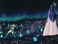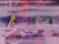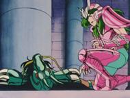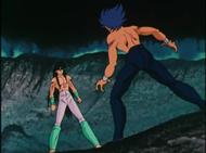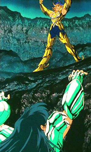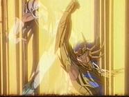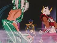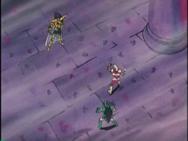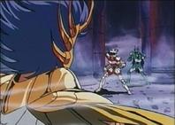 – Seiya y Shiryu suben las escaleras que conducen a la casa de Cáncer inquietos por la súbita desaparición del Cosmos de Hyoga. Para ganar tiempo, ambos han pactado que Shiryu peleará contra el Gold Saint de Cáncer mientras que Seiya se dirigirá a la casa de Leo. Cuando