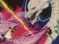 Atenea devuelve el alma de Shiryu a su cuerpo, que se encuentra tendido en la casa de Cáncer, para sorpresa de Deathmask, que no comprende como Shiryu ha podido regresar. Shiryu intenta, sin mucho éxito, atacar de nuevo al Gold Saint con el Rozan Shō Ryū Ha, pero Deathmask lo detiene sin dificultades y le ataca con una sola mano, después vuelve a utilizar el Seki Shiki Meikai Ha y devuelve al Dragón a las cercanías del Yomotsu.