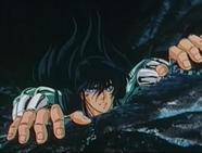 Deathmask se recupera y se burla de Shiryu. El Bronze Saint le lanza su Rozan Shō Ryū Ha pero el Gold Saint lo bloquea fácilmente. El Gold Saint de Cáncer comenta a su oponente que los golpes que recibe son de poca importancia, ya que está protegido por un Gold Cloth. Deathmask comienza entonces a evitar la velocidad de la luz los ataques de Shiryu y consigue que el Bronze Saint caiga por segunda vez en el cráter, pero en el último momento antes de perderse en la oscuridad Shiryu logra agarrarse al borde del precipicio, entonces Deathmask empieza a pisotear su mano.