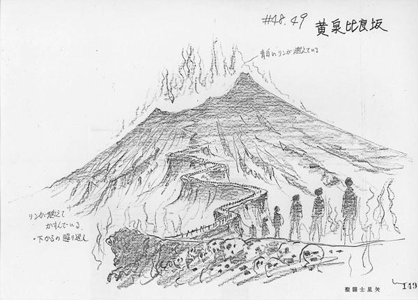 Hirasaka Shikoku (o Yomotsu Hira) Bajo la casa de Cáncer (teóricamente) se esconde una de las entradas del mundo de Hades, el Yomotsu Hirasaka (colina) Shikokku (oscuridad), que forma parte de la mitología japonesa sintoísta. Yomotsu Hirasaka significa "la colina de Yomi", Yomi es el nombre dado por los japoneses al país de los muertos (underworld). Esta colina oscura del mundo de los espíritus viene a ser la frontera que separa el mundo de los seres vivos y el mundo de los muertos (Meikai, Yomi no kuni). Los kanjis usados para escribir Yomi significan literalmente "la cuesta plana de la fuente amarilla" o "Yellow Springs" (la famosa fuente amarilla a la que se dirige Saori en el film 3 de Saint Seiya, Abel) ya que en China el amarillo es el color asociado a la tierra y el mundo de los muertos es descrito como una fuente subterránea Huang-ch'üan, un reino definido vagamente bajo tierra en contraste con el reino celeste. El Yomotsu Hirasaka es la antesala del más allá, parece un enorme cono volcánico al que se dirigen las almas de los muertos, dispuestas en filas y desprovistas de conciencia. El interior del volcán es un abismo que conduce al infierno, en el que se lanzan todas. Aunque su conexión es desconocida. Su ubicación parece no estar en este mundo y sólo se puede acceder a ella a través del desplazamiento entre dimensiones.