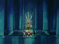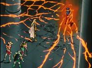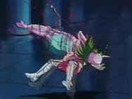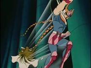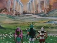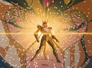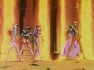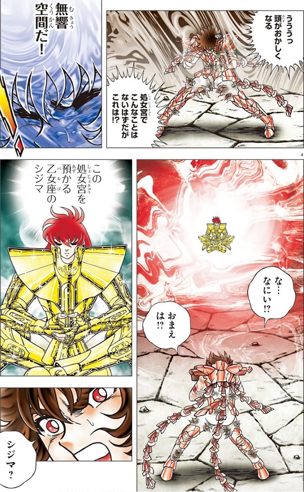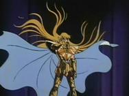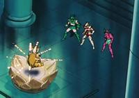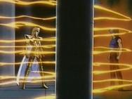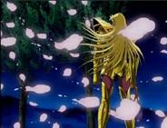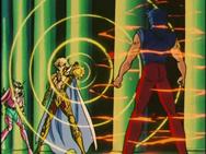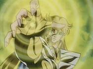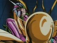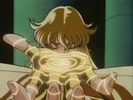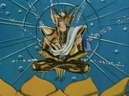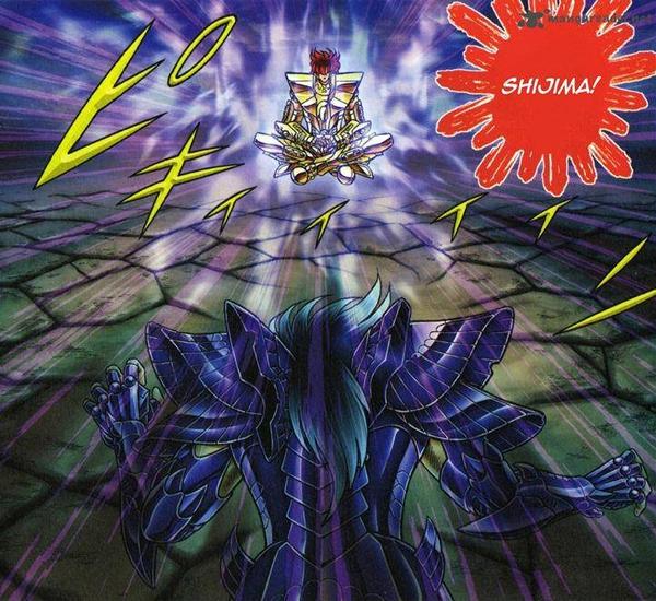 volver de la ilusión, con un movimiento de la mano Shaka destruye la armadura