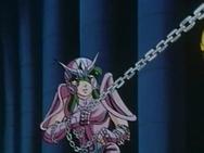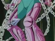 Cuando llega su turno, Shun entra en acción, lanza su Nebula Chain (cadena nebular) contra Shaka, pero, incomprensiblemente, esta no alcanza su destino, se detiene en seco ante Shaka ante la incredulidad del caballero de Andrómeda, en un instante y tras pronunciar una palabra “Kān” (o Ham), Shaka hace que la cadena regrese y ataque al propio Shun, aprisionando su cuerpo hasta asfixiarlo. Shaka le advierte que si pronunciara otra palabra más la cadena le rompería todos sus huesos, Seiya le exhorta que suelte a Shun, Shaka lo zarandea por los aires y hace que ambos se golpeen entre sí y caigan por los suelos.