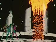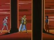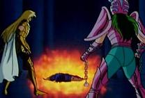 – difundido en Francia el 12 de diciembre de 1.987 – Ikki no es más que un cadáver con vida para Shaka. El Bronze Saint se ve niño, en compañía de los otros huérfanos de la fundación Graad. Los niños no pueden oírlo y Shun, maltratado, no ve a su hermano. Shaka se prepara para dar el golpe de gracia a Ikki, totalmente indefenso y a su completa merced, con el Riku Dō Rin Ne, pero Shun interviene y bloquea su brazo con la cadena, Shaka encuentra ridícula esta intervención, pero Ikki lo insta a que lo suelte, pues quiere ser él quien lo enfrente. A pesar de que Ikki ha quedado desprovisto de sus sentidos ordinarios aún conserva su voluntad y su cerebro, que Shaka no ha logrado suprimir... Debido a la explosión del cosmos renovado de Ikki, Seiya y Shiryu recobran lo conciencia, despiertan y ven que Shaka abrió los ojos y se preguntan qué ha sucedido mientras estuvieron inconscientes, Shaka prepara un nuevo ataque con el Riku Dō Rin Ne para destruir el último y más poderoso de los sentidos de Ikki, su pensamiento. Para sorpresa de Shaka, no pasa nada. Una barrera de energía rodea y protege el cuerpo de Ikki. Rayos naranjas se extienden violentamente por toda la Casa de Virgo, causando grandes daños a su entorno. Las ondas de energía siguen aumentando en intensidad, mientras que Shaka concluye que Ikki utiliza sus conocimientos del Phoenix Genma Ken para atacar, puesto que sólo le queda pensamiento. Shaka vuelve a usar el Tenbu Horin para acabar con él, e Ikki cae en la nada, sus ondas de energía desaparecen con él. No obstante, Ikki se comunica con sus amigos mediante su Cosmos, comprenden que ha alcanzado el séptimo sentido. Ondas de energía emanan de nuevo del cuerpo de Ikki con más fuerza aun. Shaka admite que su propio Cosmos no es tan poderoso. Columnas de energía naranja de se levantan en toda la Casa y giran alrededor de Shaka. Ikki desaparece y su Cosmos parte por los aires perforando el techo del templo antes de caer sobre el propio Shaka, que a continuación se encuentra completamente inmovilizado.