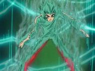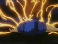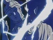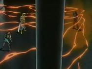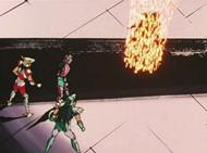 a ejecutar el Riku Dō Rin Ne e Ikki trata de escapar del ataque, fuera