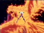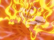 bella alusión a la leyenda del rey de los monos) Shaka vuelve a atacarlo con su técnica destructiva, haciendo esta vez que su cuerpo se deshaga en cenizas en medio de unas llamas azulades, en un instante, todo ha acabado...
