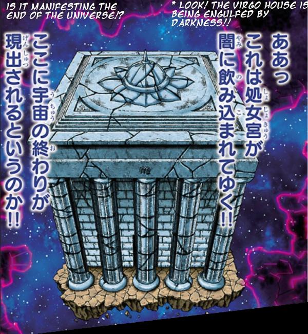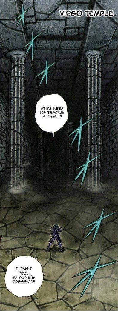 En el manga, la estructura del templo de Virgo es mucho más simple, está compuesta tan sólo por columnas griegas que rodean un recinto cuadrado con techo plano sobre el cual se aprecia el simbolo zodiacal de Virgo. Versión Hades