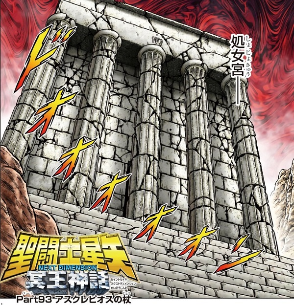En el manga Next Dimension, la estructura exterior del templo de Virgo sigue el esquema del manga clásico, aunque en esta ocasión podemos ver la parte superior del edificio, decorada con una escultura enorme de una flor de loto boca abajo.