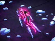 Camus comprende y se resigna ante la situación de Hyoga, juzga que el caballero del Cisne no tiene oportunidad contra los Gold Saints por culpa de sus sentimientos hacia su madre y su cólera lo hace incapaz de alcanzar el séptimo sentido, así que decide matarlo él mismo con su técnica suprema Aurora Execution y encerrarlo en un bloque irrompible de hielo, bajo pretexto de no querer verlo morir contra otros Gold Saints por un ideal que él considera equivocado. Un aire frío invade la casa de Libra, Camus mira el cuerpo de Hyoga con lágrimas en los ojos, consciente que le ha ofrecido un sueño eterno al encarcelarlo.