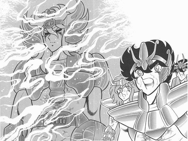 Fanart de Marco Albiero (Italia) Existe una estúpida manía de feminizar a Shun en exceso por culpa del anime. En el manga de Kurumada Shun no es como muchos fans suponen. Es cierto que es suave y delicado en apariencia, pero no se supone que parezca mujer o tenga comportamientos y maneras femeninos. El anime lo hizo así al adaptar las primeras sagas. No es hasta las sagas de Asgard y Poseidón que abandonan esas raras e innecesarias ideas... hasta los propios responsables del anime deben haber pensado que ni tenía razón de ser. Obvio que lo hicieron por su constelación Andrómeda, pero entonces lo mismo hubieran podido hacer con Virgo Shaka, pero no fue así. Es cierto que en el manga hay rasgos de feminización de personajes masculinos, pero no de forma tan exagerada como en el anime. Esta tendencia deriva del concepto ideal de la belleza femenina, haciendo andróginos a los hombres, pero Kurumada nunca exageró con esto. Ejemplos serían Aquarius Camus, que tiene ciertos rasgos femeninos en el manga, como labios brillantes y uñas largas, y también Pisces Aphrodite, que es un tanto andrógino en apariencia en el manga pero mucho menos que en el anime, aunque hay que señalar que aun en el anime no exageraron tanto este aspecto del Gold Saint de Pisces como con Shun. Y entonces, de ahi deriva la cosa medio rara del templo de Libra. Al principio la escena es prácticamente idéntica al manga en el anime, Shun permanece sentado con Hyoga en brazos. Pero en el anime esa escena sentados va más allá, Shun coloca el cuepo de Hyoga en el suelo y se estira encima de él, esa posición desprende tonos shonen-ai que Kurumada nunca usó en su manga. Podemos entender también porqué se hizo la escena asi en el anime. Saint Seiya dio origen a una la oleada de dojinshi yaoi y shonen-ai a mediados de los ños ochenta, a las mujeres les encanta ese género, especialmente en Japón y, bueno, como Saint Seiya tenía bastantes seguidoras femeninas a pesar de ser un manga shonen, pues obvio que Toei Animation sabía de los gustos de las mujeres y los responsables del anime no lo iban a dejar sin explotar... si Kurumada ya de por sí dibuja hombres atractivos en su manga pues sólo faltaba aplicarle algo más de sazón para las mujeres en Japón, reconociéndose de esta manera la belleza masculina. Muchos fans occidentales ignoran o no están informados de estos detalles de la cultura japonesa y debido a los estereotipos creen cosas que realmente no son parte del canon de Saint Seiya.