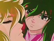 En España, una asociación moralista consiguió prohibir que se exhibiera el anime de Saint Seiya en el país. Uno de los motivos fue por la supuesta homosexualidad de los personajes. En varias ocasiones se ha calificado a diversos personajes de Saint Seiya como símbolos yaoi, principalmente a Shun de Andrómeda, Afrodita de Piscis y Misty de Lagarto. Una de las escenas más comentadas de la teleserie clásica fue aquella en la que Shun usa su calor corporal y el de su cosmos para descongelar a su amigo Hyoga tras su primera batalla contra Camus. Cabe resaltar que dicha escena sólo tiene una página en el manga, donde Shun simplemente sostiene el cuerpo de Hyoga para que permanezca en posición sentado, mientras que en el anime es muy diferente, y según el propio director de animación, fue alterada para expresar esta connotación que originalmente no poseía. El encuentro en la casa de Libra entre Hyoga y Shun se convirtió en una de las escenas más recordadas de la serie, sobre todo por el fanservice. Fue uno de los momentos más emotivos, pero también más malinterpretados. Shun, aun con la culpa de lo ocurrido en el templo de Géminis, decide quedarse junto al congelado Hyoga para intentar reanimarlo, animando a seguir avanzando a Seiya y Shiryu, a quienes consideraba más fuertes. Shun ofrece su calor corporal para reanimar a Hyoga, en una escena bastante sugerente, sobre todo para los estándares en la época en que fue emitida. Shun siempre había sido mostrado como el Bronze Saint más sentimental de todos, con una sugerente armadura rosada y un diseño mucho más estilizado de su personaje, que se contrarrestaba con el de su hermano Ikki, que representaba toda la dureza del Fénix. Pero si bien el objeto de su diseño era resaltar la nobleza del personaje y que era el que quizás estaba más dispuesto a sacrificarse por sus compañeros -las cadenas de Andrómeda, por ejemplo, eran un arma mucho más defensiva que ofensiva- la mirada adolescente hizo que pensáramos que lo que pasó en la casa de Libra tenía una intención más bien romántica que heroica. Buena parte de esto es culpa del anime, ya que el manga retrata esta parte del arco de una manera mucho más distante. Igual de cercana, pero más bien como dos compañeros que se ayudan. Una decisión que seguramente obedece a la dirección que se le quería dar a la serie y a la complacencia de los fans a través de fanservice, donde vemos que con un par de segundos de animación, es posible cambiar el contexto de una escena y volverla icónica. De hecho, es una de las escenas que más recreaciones ha logrado y que los fanáticos han convertido en una imagen de culto.