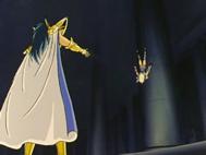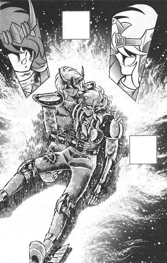 Canal Saint Seiya Next Dimension Fan Group Camus no se deja amedrentar por las explicaciones de Hyoga y envía un rayo de luz a Siberia para hundir en las profundidades el barco que contiene el cadáver de Natassia, la madre de Hyoga. Al quitarle el único vínculo de alivio que le quedaba, provoca la ira del Cisne. Camus le responde con desprecio a sus sentimientos por su condición de Saint, pues indirectamente pretende despojarlo de los sentimientos hacia su madre, porque éstos le impiden poseer la frialdad propia de un saint de los hielos, y le confiesa que con ello le ha quitado una debilidad de su carácter. No obstante, la profunda tristeza e ira que invaden a Hyoga no son suficientes para despertar el séptimo sentido, pues aún se halla fuertemente atado a su madre. Algunos fans especulan que fue Camus quien sacó a Hyoga del espacio interdimensional. Es mucha coincidencia que Camus haya estado en la casa de Libra. Seguramente estaba bajando para encontrarse con su alumno y cuando se percató que Hyoga fue enviado a otra dimensión lo trajo al lugar en el que se encontraba en ese momento, el templo de Libra. Pero si nos basamos en lo relatado en el volumen 9 del manga Hyōga simplemente cayo ahí en el momento en que la cadena de Shun golpeó a Saga en la cara y el Saga bueno le ordenó que dejara en paz a los Bronze Saints. En ese momento, el Saga de malo atiende lo que le dice el Saga bueno y dice que los dejará pasar, deja sin efecto el Another Dimension y libera a Hyoga. Es muy poco probable que Camus pudiera sacarlo cuando Kurumada menciona explícitamente que sólo el Gemini Gold Saint puede manipular tiempo y espacio. Camus no puede hacer eso. En un panel del manga se ve como Hyōga cae violentamente al suelo del Templo de Libra, se libera porque termina el efecto del Another Dimension no porque Camus lo saque. Y todavía Shun dice "me pregunto si Hyōga escapó del Another Dimension... espero que caiga en un lugar seguro". Es bastante claro. Da la impresión de que mientras más tiempo permanece la víctima flotando en el interior más lejos se desplaza vagando y vagando por ahí. Si el efecto acaba rápido, pues la víctima cae bastante cerca de donde estaba, eso explicaría que Hyōga pues no se alejó mucho. Es lógico. El único interrogante que queda es que andaba haciendo Camus en el templo de Libra, pero eso se explica fácil con que simplemente sintió el Cosmo de Hyōga y fue a buscarlo; además que el mismo Camus le dice a su discípulo que bajó a detenerlo porque el templo de Libra está desprotegido, ya que Libra Rōshi no puede abandonar Lushan. Hay que tener en cuenta además que en un comienzo Kurumada quería que el Gold Saint de Escorpio fuera el maestro de Hyoga (de hecho hay un scan de este en la casa de Libra), y se arrepintió en el último momento para cambiarlo por el Gold Saint de Acuario. Por ende, la idea inicial de que baje desde la casa de Escorpio hasta Libra tan rápido era justificable. Con el cambio de signo zodiacal quedó un agujero argumental ahí, pero no por eso hay que empezar a buscarle la vuelta (inventar), con eso de que Camus puede sacar gente de otras dimensiones. Hasta el mismo Camus dice que desciende hasta el templo de Libra porque está sin resguardar... se hace evidente que la verdadera razón debe ser también que Kurumada no quiso dejar vacío el paso de los Bronze Saints por el templo de Libra, sin que pasara nada ahí, pues en cada uno de los doce templos sucede algo, incluso en los que no había un guardián, como Gemini y Sagittarius. De algún modo, Camus llega a suplantar a Dōko... o esa fue la excusa. Llega a decirle a Hyōga que se detenga, lo que realmente quería era que no lo mataran....
