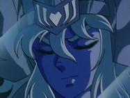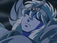 “Así el filtro glacial de la Aurora te ha abierto las puertas al otro mundo, mis esfuerzos han sido vanos, tu corazón no ha querido saber nada, y era la muerte lo que te esperaba si hubieras continuado tu odisea. Por eso he decidido ofrecerte un final digno de un príncipe.... lo menos que puedo hacer ahora por ti es asegurarme que nada vendrá a interrumpir tu reposo eterno. Perdóname caballero de Cristal por haberle quitado la vida a tu discípulo más fiel y consagrado, pero como tú su gran humanidad había hecho de él una víctima, y nadie puede escapar a su destino. Ahora, nada ni nadie podrá fundir este féretro de hielos eternos, y si tu alma esta ya cerca de tus personas queridas.. tu cuerpo se quedará para siempre en el Templo de Libra. Reposa en paz amigo mío, hermano, adiós Hyoga, adiós noble caballero del Cisne.” (Camus)
