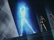 Shiryu reconoce la armadura de su maestro y entiende que ha aparecido por expreso deseo del viejo maestro Dohko, para así ayudar a los caballeros de bronce a sacar a Hyoga del bloque de hielo en el que lo encerró su maestro, por lo que le da las gracias. Dohko le ha otorgado la oportunidad de probar con las armas que contiene dicha armadura. El Cosmos de Shiryu entra en resonancia con la armadura y se prepara para utilizar las armas de Libra y romper el ataúd de Hyoga.