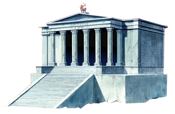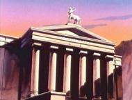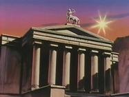 SAGITARIO / SAGITÁRIO / SAGITTAIRE / SAGITTER: Es la novena casa del Santuario de Atenea, morada de Aiolos/Aioros, Gold Saint de Sagitario. Es similar externamente a la casa de Escorpión, en la fachada incorpora la inscripción de Sagittarius y una escultura completa, no en relieve, representando a un centauro, un ser con cuerpo de caballo y el torso, brazos y cabeza de hombre, con flecha y arco. El templo no presenta grandes diferencias con un templo grecorromano excepto por el hecho, por supuesto, de exhibir en la cumbre una escultura de un centauro que esgrime un arco.