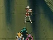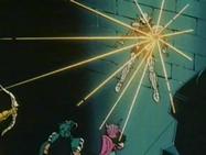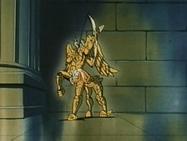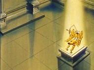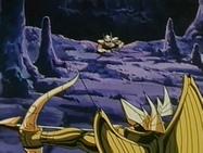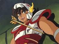 – difundido en Francia el 23 de enero de 1.988 – El tiempo en el reloj de fuego se consume rápidamente. Los caballeros se reúnen en la casa de Sagitario. Seguros de que no hay nadie defendiéndola (Aioros de Sagitario murió defendiendo a la bebé Atena) y se disponen a cruzarla rápidamente. Mientras los caballeros de bronce se dirijen a la novena casa, acontece algo muy particular: la armadura de Sagitario aparece frente a Atenea, atraída por el báculo de Nike. Al regresar al santurario, las 12 armaduras de oro comienzan a resonar en armonía, como llamándose las unas a las otras. Con la presencia de la última armadura dorada en el Santuario, todas brillan con intensidad al estar de nuevo juntas. Después de esto, la armadura dorada de Sagitario desaparece. Shiryu y Seiya, que transporta a Shun inconsciente, llegan a la casa de Sagitario y no ven a nadie. En ese momento, la armadura dorada de Sagitario aparece frente a ellos y, de repente, el torso pivota y se mueve con el fin de apuntar con su flecha al corazón de Seiya. Seiya se mueve, pero la flecha sigue apuntando a su cuerpo, hasta que la armadura lanza el proyectil, Seiya ve como la flecha se acerca a su pecho pero se clava en la pared situada a su espalda.