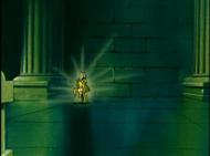 subterráneas Tras cruzar el pasadizo se encuentra una brumosa niebla que cubre el suelo. Cuando alguien se dispone a cruzarla, esta desaparece dejando ver un abismo por el que caen hacia una muerte segura. Justo antes de que los cuerpos impacten contra el suelo se abre un círculo de energía que conduce a los subterráneos y que se cierra tras ser atravesado. En el techo de los subterráneos se encuentra una cámara natural por donde pasa un torrente de agua. Cuando quienes intentan cruzar estos subterráneos sobreviven a las rocas afiladas, el techo de estos se agrieta dejando fluir todo el torrente de agua hasta inundar completamente la zona, matando por ahogamiento a quienes se encuentren allí. Nada más entrar a los subterráneos, del fondo de una de sus grutas salen disparadas violentamente una serie de filosas rocas como si de auténticas lanzas se tratasen, dirigidas hacia los cuerpos de quienes intenten atravesar los subterráneos. La quinta y última de las trampas, se trata de un precipicio desde el que hay que saltar hacia la otra orilla en la que se encuentra la Armadura de Sagitario. Quien llega hasta la armadura es transportado automáticamente al interior del Templo del Centauro concretamente a la cámara de la armadura de oro.