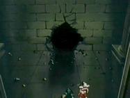 flecha de Sagitario hace explotar el muro y desvela una caverna secreta,