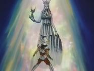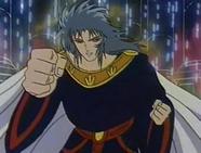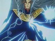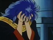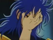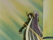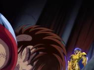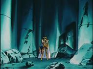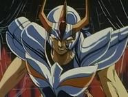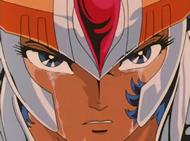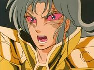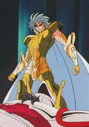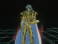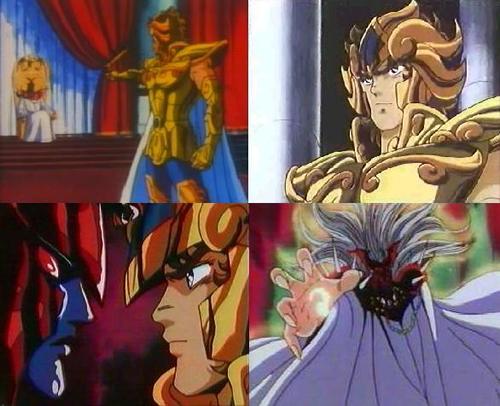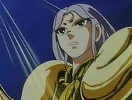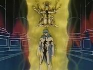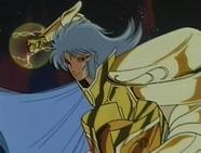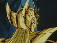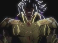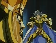 El Gold Saint se prepara para darle el golpe final, pero se da cuenta de que el rostro de la justicia representado en el lateral del casco de su Gold Cloth comienza a derramar lágrimas. Saga no entiende por qué su Gold Cloth llora la muerte de un traidor, y cuestiona qué tiene de malo que una persona con poder quiera dominar el mundo, si él no lo hace, la Tierra podría verse atacada por Zeus en el cielo, Poseidón en el mar, o Hades en la Tierra de los Muertos, piensa que el mundo necesita un salvador como él para protegerlo de las ambiciones de los dioses que quieren apoderarse del planeta.