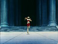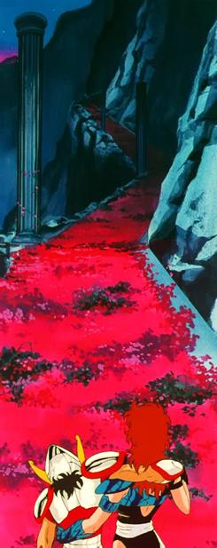Shaina llega para cuidar de Marin y le dice que siga su camino, Seiya se apresura a llegar a la Sala del Papa, cuyo templo ya está a la vista una vez eliminado el jardin de Royal Demon Roses de Afrodita.