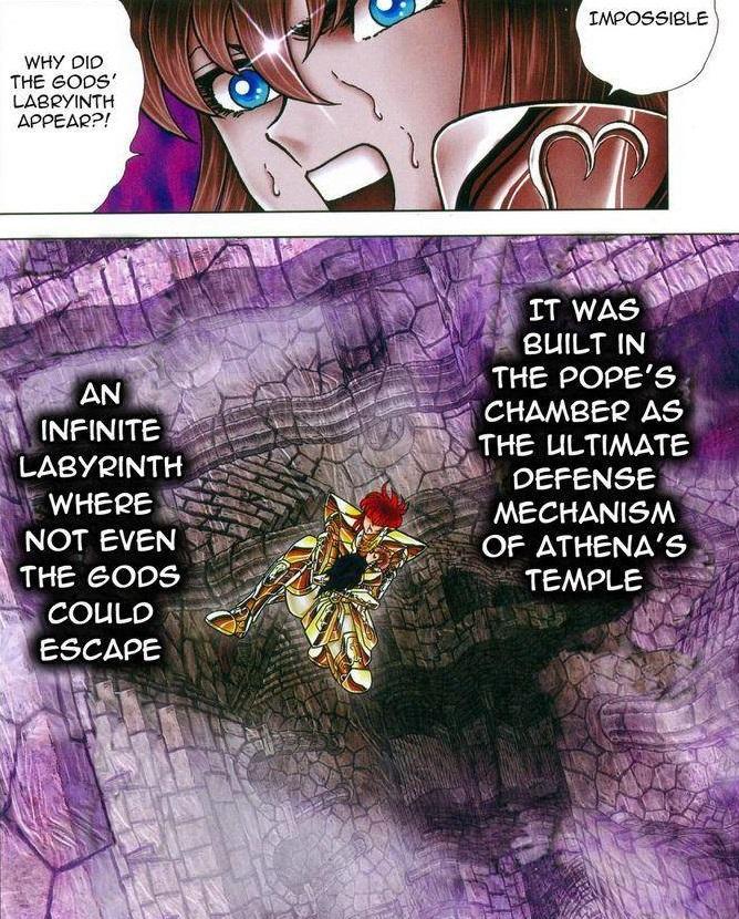de los Dioses En el manga precuela Next Dimension se pone en evidencia que el Pontífice ha erigido un laberinto en su templo como trampa / medio de protección, para evitar que los intrusos puedan atravesarlo, como el último mecanismo de defensa del Templo de Athena, tras el jardin de rosas rojas que se activa en las escaleras que conectan con el duodécimo templo zodiacal de Piscis.