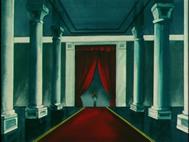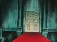 El camino que conduce al trono está cubierto por una larga alfombra roja con bordes dorados que parte desde la entrada, y flanqueado por columnas circulares de base rectangular. La parte posterior del trono está cubierta por unas grandes cortinas, también rojas y con bordes dorados, que ocultan el pasaje que conduce al altar y templo de Atenea. Saga también esconde ahí unos estantes donde reposan las Pandora box de las armaduras de oro en un expositor.