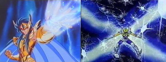 聖闘士に同じ技は二度と通用しない! Cuando un caballero declara el pequeño ritual "un mismo ataque no afecta dos veces a un caballero..." su Cosmo debe sobrepasar (aun momentáneamente) al de su atacante, pues si está débil, cansado o herido, el mismo ataque debería ser eficaz, pues el Cosmo del atacante, que está en mejor forma, es superior al de la víctima. Parece que los ataques tienen un esquema, un tipo de ejecución consustancial a su usuario, de modo que el receptor descodifica el "esquema" (simple o complejo), y entonces sabe como evitar sus efectos y puede sacarnos la cantinela habitual.
