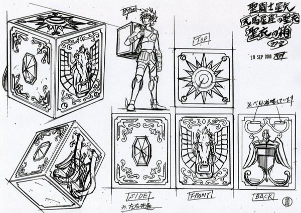 El Pegasus Bronze Cloth adaptada al cuerpo del Saint y en su forma Object Kurumada concibió unos ropajes o "mantos sagrados" con ingeniosos y elaborados diseños, que se dividían en piezas acoplables sobre el cuerpo de una persona para formar una protección rígida. Estas no sólo cumplían con cabalidad sus propósitos de proteger y amilanar al personaje, sino que conservaban una inusitada ligereza y flexibilidad, para comodidad del usuario de turno. Asimismo, las piezas de las corazas podían ser re-encajadas unas con otras de forma independiente al individuo, configurando un zócalo, estatua o totem que representaba el símbolo zodiacal o de la constelación protectora del personaje que identifican. Cuando se encuentran en reposo su forma es conocida como Object. Es innegable que merced a la conjunción de todos esos elementos las armaduras lograron ejercer una gran fascinación. La forma Object (Objet) オブジェ