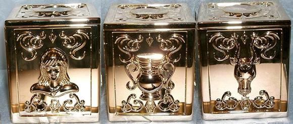 Silver Saint (白銀聖闘士/シルバーセイント): En kanji "Hakugin Seitôshi", o sea "Combatiente de Plata"; con el furigana "Silver Saint", o sea "Santo de Plata" en inglés. Cada uno de los Saints de rango intermedio en el ejército de Atenea. Silver Cloth (白銀聖衣/シルバークロス): En kanji "Hakugin Seii", o sea "Vestidura Sagrada de Plata"; con el furigana "Silver Cloth", o sea "Tela/Paño de Plata" en inglés.