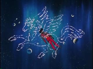 El trazado de las estrellas de las constelaciones en los ataques Durante el previo a su ejecución, Seiya arde su Cosmo, mueve los brazos dibujando a veces la constelación de Pegaso, justo antes de enviar su ataque, sobre todo al principio de la serie, ambas manos se envuelven con un aura azulada, tras concentrar la energía en su puño derecho golpea y propulsa cien meteoros. Mecánicamente Seiya mueve sus brazos para formar las 13 estrellas que forman la constelación de Pegaso, como una especie de ritual, después de dichos movimientos la proyección de energía es liberada con su puño o pie. Posteriormente, tiene tendencia a enviar el Pegasus Ryu Sei Ken directamente, sin baile o pose previos. Por su parte, Tenma, en el manga precuela Saint Seiya ~ The Lost Canvas nunca hace los movimientos de preparación. Al principio Seiya traza los 13 puntos de la constelación de Pegaso para luego realizar tu técnica Pegasus Ryu Sei Ken (Puño Meteoro de Pegaso), pero luego ya no, quizás ya no era necesario porque alcanzó el nivel necesario para usar los meteoros o sólo era un efecto estilístico que no se usa más para no ser repetitivo.