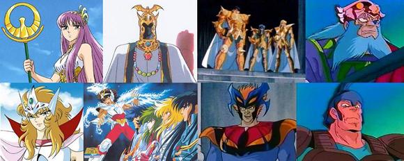 Saints de la guardia privada Estos guerreros presentes sólo en el anime constituyen una especie de subclase de Saints al servicio de Gigas y Phaeton. Ellos no forman parte de la orden de los 88 Saints vestidos con una armadura inspirada en una constelación protectora, por lo que sus armaduras no tienen ningún rango. También es probable que estas protecciones no tengan todas las capacidades inherentes a las Cloths oficiales. Por supuesto, todos los personajes de esta categoría también son inventos del anime. Docrates