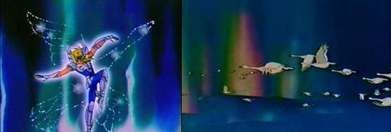 siguientes: Ahora bien, el ataque ilusorio de Kanon es exactamente el mismo que el de Saga (mismo nombre), y no más o menos similar (como podría ser la Ilusión del Fénix). Pues, si Kanon la aprendió por Saga seria antes de que este lo hiciera del Pope, por lo que se trata lógicamente de una técnica de los hermanos Géminis, lo que es corroborado por el hecho de que Shion no recurre nunca a esta técnica. En cuanto al hecho de que se presente como una técnica del Pope en el Episodio G, es un simple lapsus de Okada, o de la autopersuasión en Saga. Ya que el pobre Okada intenta hacer concordar el Manga y el Anime (atuendo rojo del Pope e ilusión demoníaca "consustancial al pope"), una árdua tarea (buena suerte Okada).