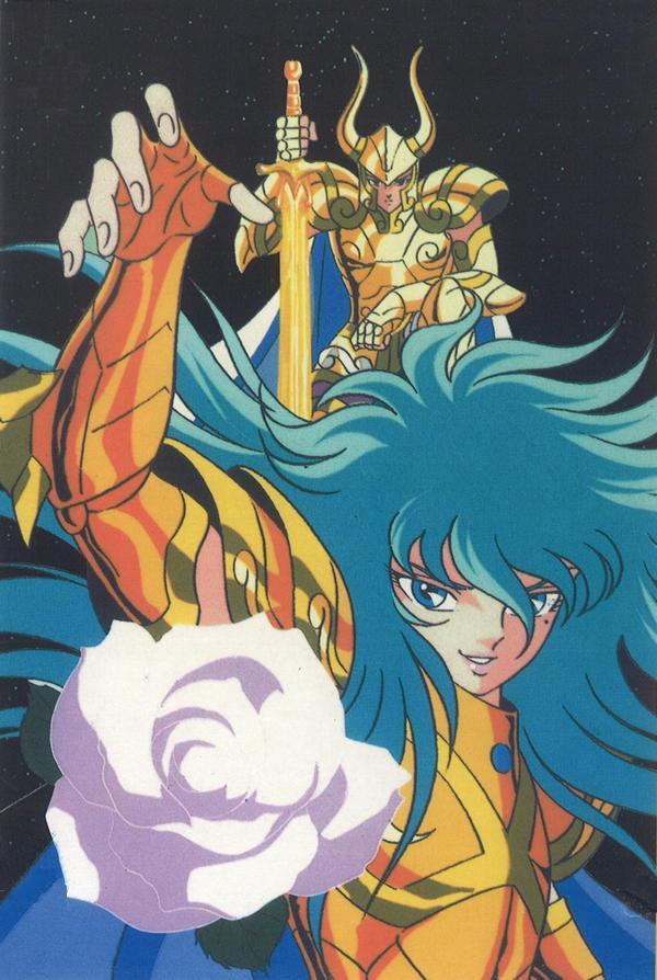 En el manga The Lost Canvas, Shiori Teshirogi usa las impresiones que dejó el Kurumanga original para dar la vuelta o reforzar algunas afinidades, tenemos por ejemplo un Asmita de Virgo bastante solitario, como Shaka, aunque de una manera diferente, y un tándem Degel/Kardia que cumple una misión juntos, pero también tenemos un Albafica más aislado que el Santo de Piscis de 1986, por lo menos es lo que parece. Colorización de Niii'Link (Francia) Hay que señalar que Dokho y Mu, geográficamente hablando, son "exiliados" y además Dokho no forma parte de esta generación de santos dorados, sino de la precedente (bueno, la última ... otra generación dirán), no hay que olvidarlo. Así que, los jóvenes del Santuario no tienen muchos vínculos específicos con ellos, que parecen mantenerse al margen de todo en sus respectivas residencias alejadas del Centro de mando, aunque mantienen cierto contacto telepático. En cuanto a Shaka, efectivamente está en realidad demasiado por encima de la plebe humana como para mezclarse con ellos ^^. Es quizás más próximo a Mu, debido en parte a los orígenes geográficos de ambos y sus vínculos religiosos (Shaka es budista y Mu vive en una pagoda que tiene aspecto tibetano), así como a sus habilidades psíquicas, su especialidad hizo que unieran sus fuerzas para traer a Ikki de regreso al Santuario, y, por último, recordar que en la fase junikyu de la saga de Hades, es precisamente Mu el primero que descubre lo que planea hacer Shaka al suicidarse, y luego es Mu quien gestiona el rosario de perlas de Shaka, vital para eliminar a los espectros, como se demuestra en el manga The Lost Canvas. El caso es que hay muy poca evidencia de elementos oficiales que permitan responder a esta pregunta de manera objetiva. Por ejemplo, un amplio sector de fans opina que la supuesta afinidad entre DM y Afrodita es imposible. Porque DM tiene un concepto muy particular de la justicia, él aplica la ley del más fuerte, y no duda en hacer algunos sacrificios. El Caballero de Oro de Cáncer, que es, sin duda, el Caballero de Oro que más adora la lucha y la violencia, es un verdadero guerrero, y si una persona es un enemigo de “su” concepción de la justicia (o de aquella a la que sirve), o si esa persona tiene la desgracia de estar entre él y su oponente, lo mata pura y simplemente, y lo hace con un cierto grado de placer. Sin embargo, su arrepentimiento ante el Muro de los Lamentos, donde incluso tras su resurrección con Shion, demuestra (casi) que tiene un fondo bueno, parece paradójico en su actitud, pues cuando él tiene pruebas de que Atenea es todopoderosa, él quiere construir también, al parecer, un mundo de paz y un mundo justo. DM estaría bloqueado, al ser un fanático radical, aunque a veces esté bien intencionado, únicamente si su visión de un mundo ideal se concreta en un mundo poderoso, y a condición de que pueda seguir luchando un poco, en esa óptica, abandona la idea de castigar con la más horrible crueldad a aquellos que considera los "malos" o los tontos que se encuentran en el lugar equivocado y en el momento equivocado. No olvidemos un punto sutil, y es que si bien sabemos con certeza que Atenea no debe aprobar las masacres, ella dirige un ejército, y necesita, en última instancia, este tipo de verdugos para hacer el trabajo sucio (esta debe ser probablemente la razón por la que la armadura de Cáncer se comprometió a proteger a DM). Básicamente, Atenea canaliza a un tipo un poco psicótico asignándole funciones que satisfagan sus impulsos violentos, con un fin "correcto" o justo (por tanto, el fin justifica los medios). Si bien Aphrodite comparte esa visión de DM de una justicia fuerte, sin embargo, podemos ver en su lucha contra Shun, que no sólo respeta a su oponente, sino que también quiere evitar, si es posible, el sufrimiento innecesario. Prefiere dormirlo mediante el veneno a causarle una muerte violenta, a menos que no tenga otra opción. Es también, y sobretodo, no un narcisista, sino un tipo estético. Aphrodite ama lo que es bello y por lo poco que podemos ver su personalidad, no parece considerar que la muerte sea hermosa, ni la crueldad gratuita. En consecuencia, no se ve con buenos ojos que se adhiera al sadismo de DM, y, de hecho, a la vulgaridad de su camarada de armas de la cuarta casa zodiacal, a quien, francamente, le falta elegancia y sutileza. Aphrodite es demasiado refinado como para poder apreciar a DM. Admira la majestuosidad de un Saga todopoderoso, y en esta misma lógica, no sería descabellado vincularle otras afinidades, por ejemplo, con Camus, distante, discreto y muy noble, con Shaka también, pero este está demasiado cerrado en sí mismo como para ser realmente amable con nadie, con Mu, pues este es, sin duda, muy respetado por el caballero de Piscis, y además es Mu quin pronuncia una frase con buenas intenciones hacia él durante las OAV del Meikai, ante el Muro de los Lamentos, por lo que parecería lógico que en ese momento Aphrodite está arrepentido.