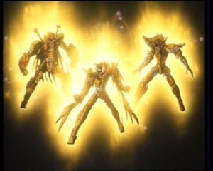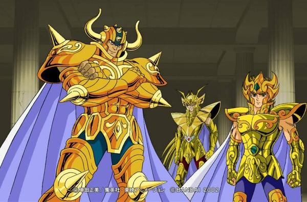 sus armaduras de oro para ayudar a los caballeros de bronce en las batallas),