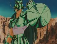 ¿Qué pasa si Seiya utiliza prestado el escudo de Medusa (propiedad de Algol, usuario de otra armadura)? No muestra nada Kurumada como para poder conocer una respuesta concluyente al caso en que un Saint utilice un arma perteneciente al Cloth de otro Saint. Pero es seguro casi asumir que el poder del Medusa Shield es propio, es una característica inherente al escudo, que dicho sea de paso no son armas, sino que son accesorios de batalla, aunque en algunas ocasiones si se utilizan como armas, dependiendo de las características del escudo. La explicación del poder del Medusa Shield que uno puede deducir, es que es el genuino gorgoneion, un artefacto de la cultura griega que consiste en una representación de la cabeza de medusa, utilizado como amuleto, pero en los mitos griegos, era la cabeza de la mismísima Medusa, que Athena colocó en su escudo, el Aegis, luego de que Perseo se la entregara después de haber asesinado a la Gorgona. En Saint Seiya, Kurumada se inspira en esta parte del mito de Perseo y Medusa, sólo que en vez de estar en el escudo de Athena, la cabeza de ella está en el Medusa Shield, portado por el Silver Saint Perseus Algol, lo que explica el origen del terrible poder de este accesorio del Perseus Cloth. La habilidad inherente de petrificar del Medusa Shield no depende del Cosmo del Perseus Saint, todo parece indicar que es un poder propio del escudo. Por lo que muy probablemente, si otro Saint lo tomara, seguramente funcionaría igual, a menos que éste obedezca exclusivamente a la voluntad del Perseus Saint. Shiryū menciona en el manga en japonés que "el Perseus Saint ha transformado la cabeza de Medusa en un escudo para pelear", lo que confirma que el Medusa Shield genuinamente contiene el poder de Medusa. Así que se puede deducir que el poder está en el escudo y no depende del Saint. ¿Todo este tema de las armas y los Saints es una incoherencia de Kurumada? No, no lo es....es simplemente que es evidente que Kurumada no iba a desechar buenas ideas para su cómic como las cadenas de Andrómeda, el escudo de Perseus Algol, la flecha de Sagittarius Aiolos, o las armas de Libra, por un enunciado que es parte del universo que él creó para su manga, el cual menciona que Athena odia las armas. Sería como tirar a la basura un potencial narrativo enorme, cuando la solución a este dilema sólo requería algo de creatividad. Sería una incoherencia si todos los Saints tuvieran armas, pero como podemos darnos cuenta, son muy pocos los que las tienen, y algunos no son armas en sí, sino que es más como accesorios o piezas de su Cloth. Como el caso del Auriga Cloth, por ejemplo... los discos corresponden a las ruedas del auriga cuando el Cloth está en su forma Object. Auriga Capella los usa como armas, sí, pero en cierta manera, esos discos son simplemente una pieza del Auriga Cloth, no necesariamente armas. Una de las respuestas al dilema de porque hay armas para los Saints si Athena las detesta, está en el trasfondo que Kurumada concibió para el Libra Gold Cloth, que claramente lo derivó de la idea de que a Athena le desagradan las armas y que por eso los Saints usan sólo sus cuerpos; debía justificar de alguna manera el hecho que, si ella siente esto, como es que existe el Libra Gold Cloth, y otros Cloths con accesorios que son similares a armas? Es sencillo....se supone que ellos usan estas armas, las de Libra, SOLAMENTE con el permiso de ella, de Athena. Y que es también el Libra Gold Saint quien determina que serán usadas para defender la justicia. Esto es lo que Shiryū menciona respecto al Libra Gold Cloth, pero es una explicación que también puede extenderse a esos otros Cloths, ya que no son muchos. Shiryū dice en el manga en japonés: "En otras palabras, estas son armas que sólo los doce Santos de Oro tienen permitido empuñar! Normalmente, los Santos combaten desarmados! Ellos no pueden usarlas si no tienen el consentimiento de Athena. Y pueden ser utilizadas solamente cuando el Santo de Libra ha determinado que serán utilizadas para la justicia, porque por largo tiempo, él ha tenido el trabajo de juzgar el bien o el mal de los Santos". Y ahí lo tenemos, esa es una buena salida a la frase de que los Saints no usan armas. Y de hecho, también es una justificación de porque los Bronze Saints las han utilizado cuando se supone que sólo los Gold Saints pueden utilizarlas, Shiryū las usa para liberar a Hyōga, las usan para destruir los Mammoth Pillar en la saga de Poseidón, y etc. Aunque no son Gold Saints, tuvieron permiso de utilizarlas porque Libra Dōko los había reconocido como Saints verdaderos y virtuosos, tenían el permiso de Athena para utilizarlas porque estaban defendiendo una causa justa. Así que no es una incoherencia de Kurumada. Es sólo un elemento de su cómic que requiere un poco de aclaración más específica. Obviamente Kurumada se precipitó un poco al mencionar que los Saints sólo usan sus cuerpos como armas cuando desde el principio utilizó a unos que tenían elementos en sus Cloths que parecían contradecir esta idea, pero por eso mismo introdujo la explicación de la razón de ser del Libra Cloth: Los Saints normalmente no usan armas para pelear, pero pueden usarlas, cuando el propósito es ayudarse para defender la paz y la justicia. Los Saints buenos pueden utilizar las armas de Libra, que son extremadamente poderosas, por eso mismo existe el Libra Gold Saint, que determina cuando se usaran para el bien, y cuando ya tienen el consentimiento de Athena.