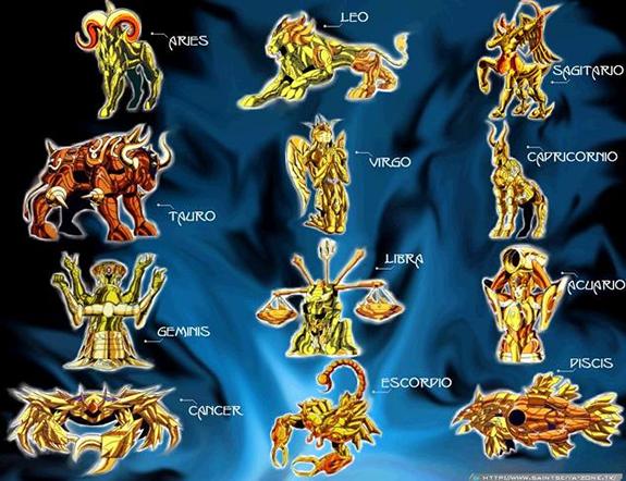 - Cada caballero de oro ha nacido bajo el signo zodiacal correspondiente a su armadura. Por ello, un caballero no puede endosar más que la armadura de Oro correspondiente a su signo (en el caso de los 5 protagonistas de bronce serian Seiya = Sagitario, Shiryu = Libra, Hyoga = Acuario, Shun = Virgo y Ikki = Leo). Así lo corroboran las fechas de nacimiento de sus fichas de personaje : Seiya 1 de diciembre (sagitario)