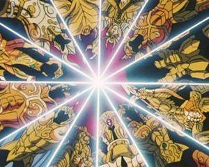 "Las constelaciones de los caballeros de oro se encuentran en la eclíptica, que es el camino que traza el sol durante su trayectoria anual, las 12 armaduras de oro del camino del sol han sido bañadas por los rayos del sol desde la antigüedad, y en cada una de esas armaduras esta guardada una fracción de la luz solar. Aumentando y uniendo sus cosmoenergías, los 12 caballeros de oro son capaces de reproducir el poder del sol"