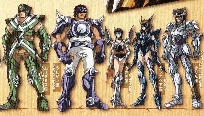 (エリダヌス座) Eridanus Según un sector de fans algunos serían Silver Saints, ya que según el código cromático del anime de The Lost Canvas todos los santos de plata tienen la armadura blanca (aunque estos se vean bicromáticos), y los demas serían Bronze Saints, ¿quién sabe?, de todos modos ahi tenemos otros 10 saints comparsas polémicos para añadir al lote, ya falta menos para completar el zoológico, ¿aparecerán todos los animalitos como caballeros de alguna clase?.