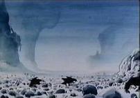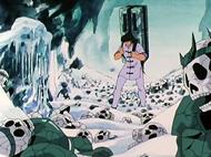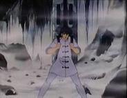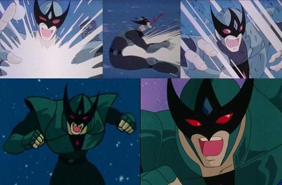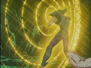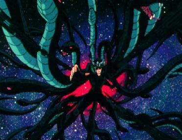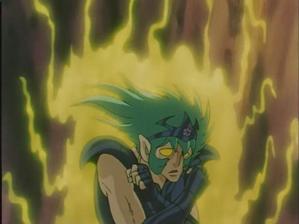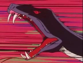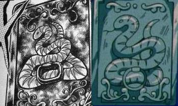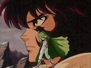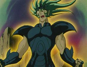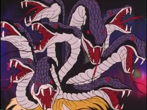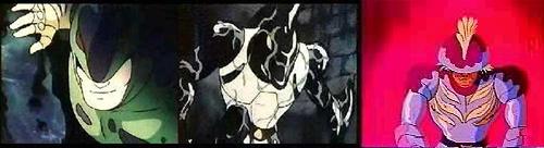 (3) Una serpiente aparece igualmente de fondo cuando Ichi prepara y lanza su ataque contra Hyoga del Cisne, pero....