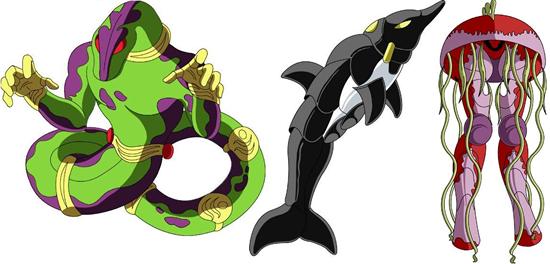 de Mar. Toman como rehén un tanker cisterna de la Fundación Graad y su tripulación para atraer a los Bronze Saints y robar el casco. Su plan funciona correctamente en la primera ocasión y los Ghosts Saints logran robar el casco durante las negociaciones, pero los héroes los persiguen hasta su isla maléfica y recuperan lo que les fue robado. Serpiente marina (Sea Serpent)