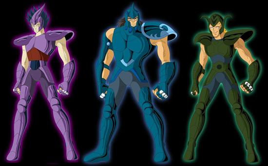 Santuario. - Son 3 ilusiones creadas por Geist (espíritus / fantasmas), que ha hecho durar tanto que al final se han convertido en caballeros fantasmas. - No hay que romperse los sesos, son claramente caballeros de bulto, inventados por Toei.