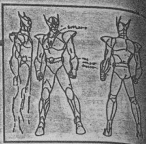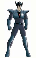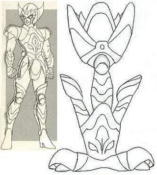 -Reda: Es posible que sea el caballero de bronce de la Serpiente terrestre porque como podéis ver sus hombreras imitan cabezas de serpiente, con dos colmillos y dos ojos, algo parecido a las cadenas de Andrómeda negro que también representaban a serpientes. Los fans han hecho muchas otras suposiciones... como el caballero de Bronce de Boyero, de la Hidra Macho o del Pez Austral.
