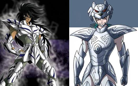 Fanart de Marco Albiero (Italia) Si tomamos en cuenta datos objetivos, debemos hacer caso de la mitología, una de esas dos armaduras podría representar perfectamente a la constelación de Casiopea (esposa de Cefeo y madre de Andrómeda), pero ¿y la otra? ... El mito griego asocia a