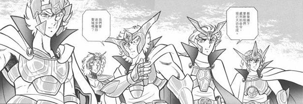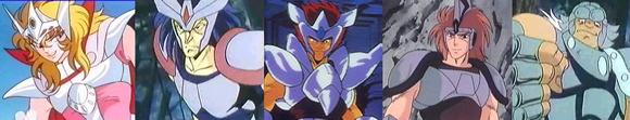 Jump Gold Selection : “Shihei Saints” la guardia ligada al Pope ¿Quiénes son los 6 caballeros de esta imagen (son 6… fíjense en los extremos…)? pero, si se fijan bien, realmente son 7!! Observen que en la misma imagen pequeña, más arriba, hay un caballero con armadura negra en el centro (aunque no se puede descartar que sea el mismo que aparece en medio pero ensombrecido). De izquierda a derecha 1* un caballero con armadura