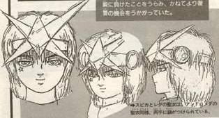 Fanart de ComX (Francia) Otro fanartista francés Xéphyr ilustró igualmente un totem para Arachne, un poco más “arácnido”... y más incoherente con las constelaciones del cielo (fuente de creación para los alquimistas del pueblo de Mu). Fanart de Xéphyr (Francia) En todo caso, estemos o no de acuerdo, oficialmente, Arachné es un Silver Saint, el de la Tarántula. REDA (o Leda) y SPIKA: Otros dos personajes que generan polémica. Tras competir con Shun por la armadura de Andrómeda, aparecen de repente usando otras armaduras. Muchos fans trataran de clasificarlos. Algunas teorías de fans apuntan que tras la destrucción de la Isla de Andrómeda y la muerte de Albiore, ellos jurarían fidelidad al Gran Patriarca y recibieron armaduras diferentes para cumplir la misión de matar a Shun, su antiguo compañero de entrenamiento. Nunca se ha revelado el nombre y constelaciones de sus trajes. Bautizados por un sector de fans como los "preety punk saints", los compañeros de entrenamiento de Shun en la Isla de Andrómeda tienen todos los números para ser caballeros de bronce, aunque gracias a su coordinación demostraron ser más fuertes que los 5 caballeros de bronce menores, aparecen claramente como personajes de relleno, no hay apenas datos para atribuirles alguna constelación ya que oficialmente no forman parte de los 88 saints. Tan sólo tenemos el nombre árabe de una estrella de la constelación de Águila (Reda) y el nombre latino de la estrella alpha de la constelación de Virgo (Spika). Es posible traducir el nombre del personaje como Reda, del árabe, estrella de la constelación del Águila, o Leda, del griego, nombre de un personaje de la mitología seguidor de Dionisios.