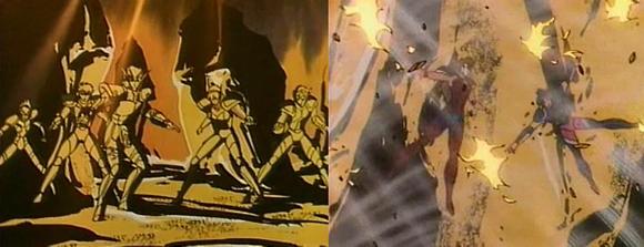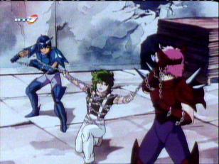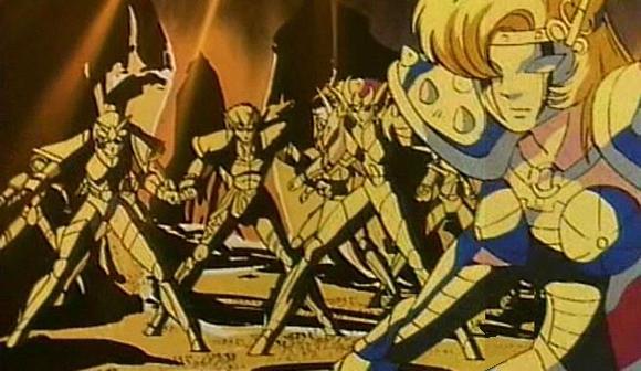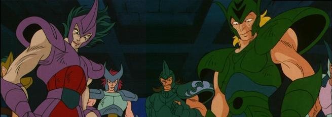 y los de Jamian (3) para entretener a Hyoga y Shun, y dejar el camino libre a Seiya para que salve él solo (como siempre) a Atenea del rapto de los cuervos.