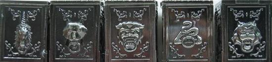 Docrates - Crystal Saint - Ennetsu Saint - Jaki - Ohko - Spartan - Arachne - Reda y Spica - Argora Es difícil establecer la naturaleza de este grupo, ¿caballeros de bronce, plata o armaduras de naturaleza desconocida? y, aunque fuera el caso, ¿a que constelación representan?, ¿habrían sido creadas con posterioridad por alquimistas muvianos?. Algunos fans sugieren que serian armaduras de guerreros que representan a otros dioses, berserkers de Ares o gigantes (en el caso de Docrates), o de los misteriosos guerreros azules (en el caso de Crystal Saint)… no se puede descartar, todas las hipótesis son viables.